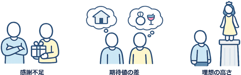 事例では、感謝不足、期待値の差、理想の高さがぶつかって対話が止まる流れが目立ちました。妻は負担の軽減を求めていて、夫は自分も大変だと反論してしまうと、会話は平行線になります。求めているのが謝罪なのか、分担変更なのか、働き方の見直しなのかが曖昧だと改善しません。