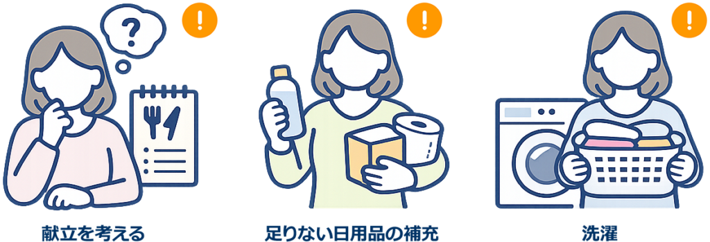 無理を続けた先に起こりやすい変化は、目の前の家事だけでは終わりません。毎日の積み重なりが心身の余白を減らして、次の日以降にも影響しやすくなります。