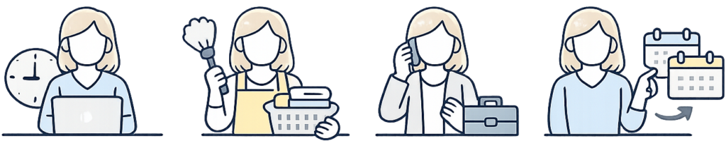 勤務時間が固定されていると、家のことや急な用事が入っても柔軟に動けません。少し調整できれば済むことでも、大きな負担になりやすくなります。